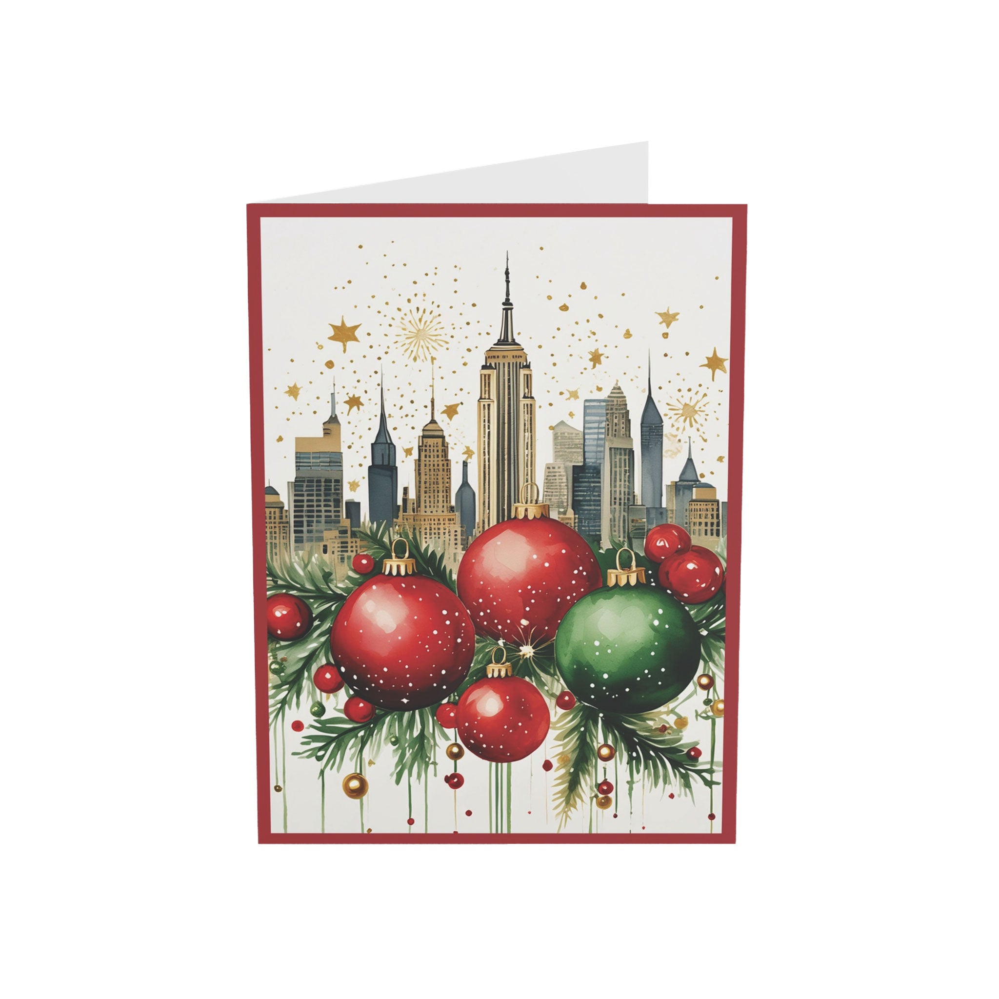Christmas Cards New York City Manhattan Skyline Theme - Single or Multiples with White Envelopes - Style 03