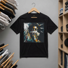 Black woman depicted as Statue of Liberty with mouth covered by white cloth symbolizing silenced freedom of speech First Amendment protest art on tee shirt.
